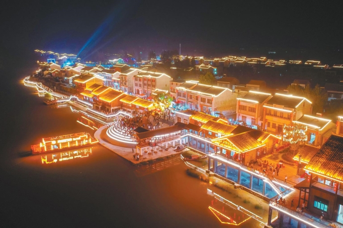 去年4月,袁市村启动改造。设计施工团队以《袁家口往事》为蓝本,将古街巷道、水乡港口、田园村落等元素相融,着力复刻市井场景。如今,吊脚楼群、看台码头依次落成,沔阳花鼓戏、魔术杂技、舞狮快闪等节目轮番登场,游客沉浸式体验“吃、行、游、购、娱”于一体。